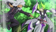 He is first mentioned by Tasuku as the gang talk about Gara`s first big kidnapping attempt on Bal. Tasuku looks up how there is another Zodiac user as they look up Kakeru`s profile, at first the team being careful that he wields a Dual Card, something very few deck builders even know exist. As Gao is launched for his next day of hunting, Kakeru runs up to Gao with a fire extinguisher to stop the burning fire that is Ozon-B. After bringing Ozon-B to the medical facility, Kakeru treats Ozon-B as he puts a compress on Bal to help with Bal`s small symptoms of a cold. He gets it back later while being asked how he has Zodiac as a buddy, explaining that Zodiac is just an extremely rare monster. After they talk, Kakeru challenges Gao to a fight.