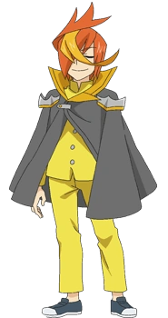 Mukuro has the appearance of a 12 year old kid. He has long spiky orange hair with a yellow bang going over his right and part of his left purple eyes. He wears a yellow uniform-like shirt with long yellow pants. He wears a black and gold cape with a long collar over his shoulders.